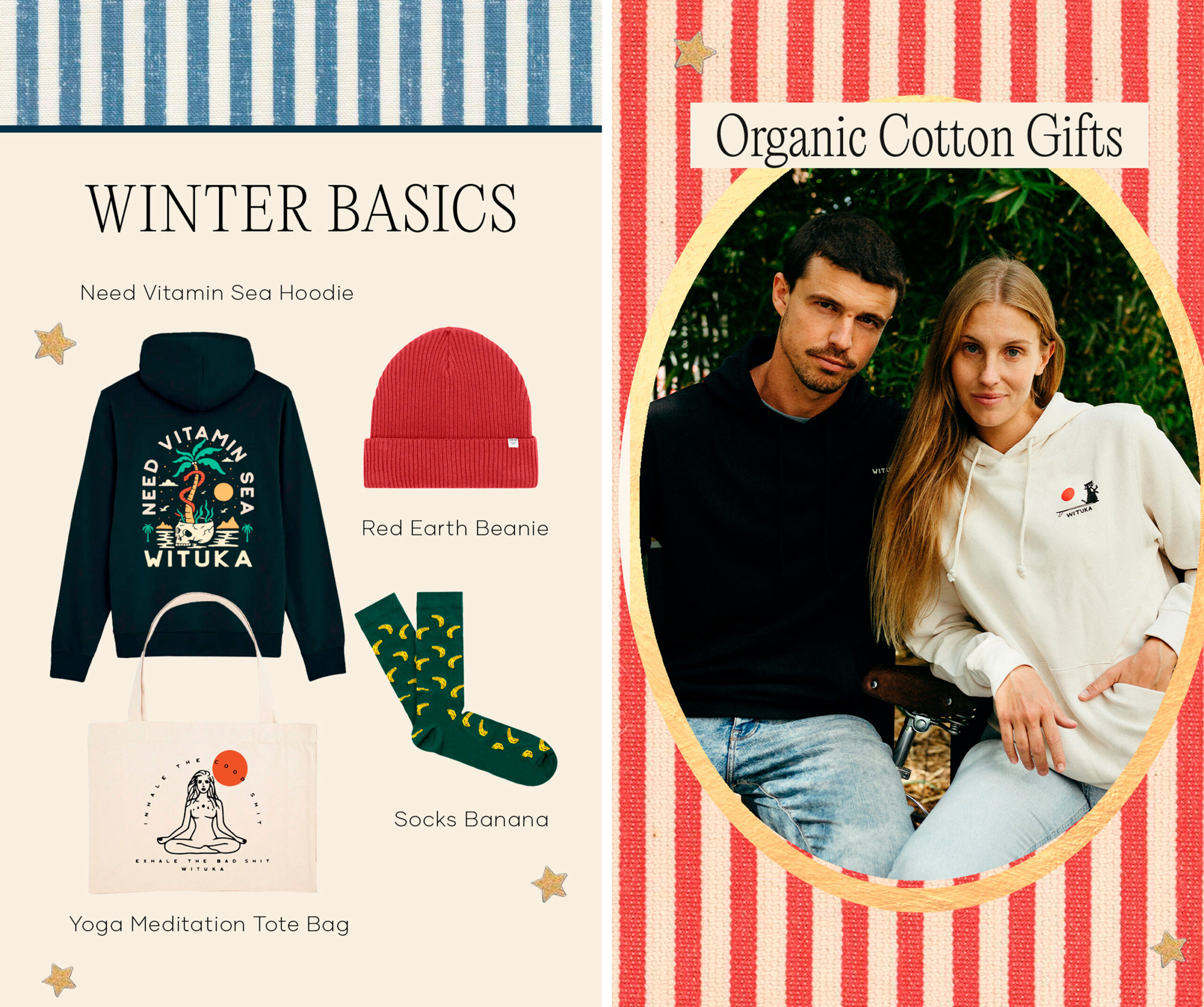 Paired with warm, organic tones and playful illustrations, the visuals create a cozy yet stylish atmosphere—inviting everyone to celebrate the season with thoughtful, sustainable gifting.